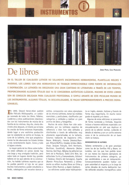 En 1890, Edward Heron-Allen publicó Fidiculis Bibliographia, un catálogo razonado de todos los libros, folletos, cuadernos y otras publicaciones relacionados con los instrumentos de música de la familia de los violines. Hoy día, ciento diecisiete años después, el interés por el tema ha crecido de forma entonces impensable, dando lugar a una vastísima producción que no solamente se centra en Europa, la cuna de la Luthería, sino que progresivamente ha ido abarcando los Estado Unidos y más recientemente Japón, Corea y todo el lejano oriente.